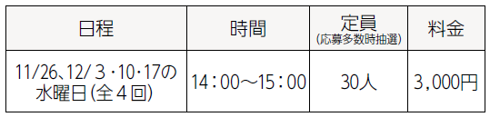 日時:11/18(火) 13:30~16:30(1人あたり1時間)