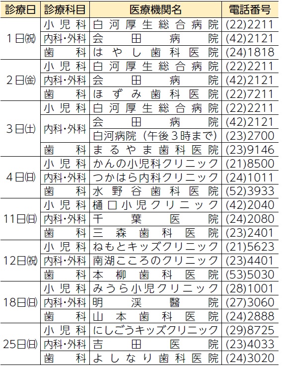 ・20日(火)/白河病院(六反山)/午後1時~2時30分