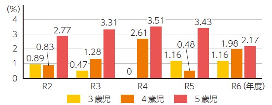 本市の5歳児の肥満傾向児の割合は、全国と比較して高く推移しています。