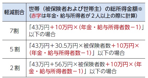 1年間の所得が基準額以下の世帯は、均等割額が軽減されます。