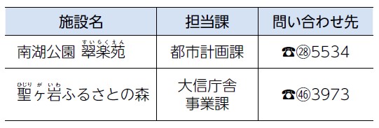 令和8年4月に更新となる次の施設の指定管理者を募集します。詳しくは、お問い合わせください。