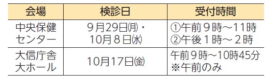 3日(水) 9:30~ 大信保健センター 40歳以上