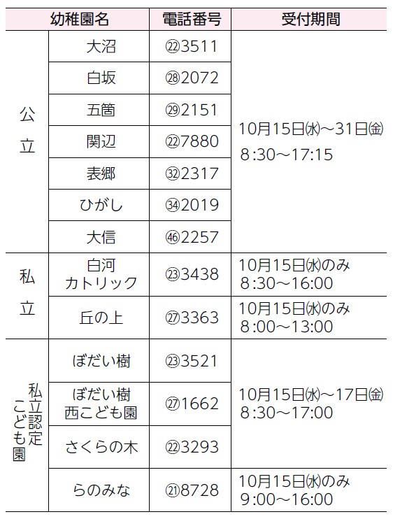 令和8年4月から市内の幼稚園・保育園に入園する園児を募集します。