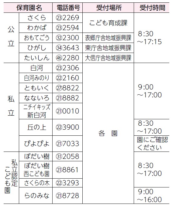 ※認定こども園さくらの木は、1歳児クラス以上が対象となります。