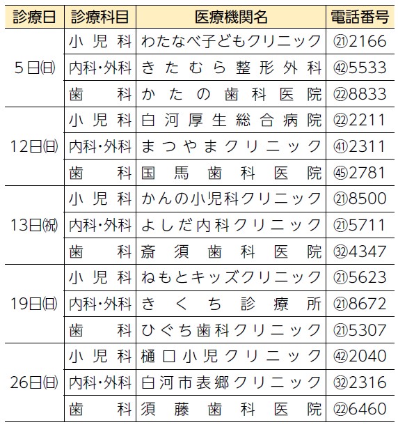 場所:白河厚生総合病院 小児科外来【電話】22-2211