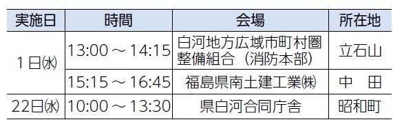 パナソニックオートモーティブシステムズ(株)白河工場、東北電力ネットワーク(株)白河電力センター、(株)三谷精密白河工場