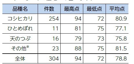 ※食味値とは、米に含まれる4つの成分(タンパク質・水分・アミロース・脂肪酸)を測定し、米のおいしさを総合的に評価した数値です。