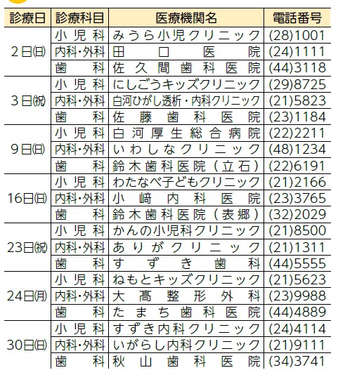場所:白河厚生総合病院 小児科外来【電話】22-2211