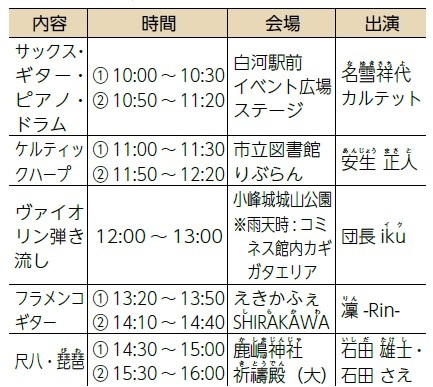 ■白河まちなか音楽3days2025まちなか公演 10/11・12[土・日]