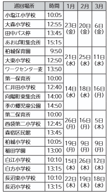 ▽移動図書館「うつみね号」巡回日程