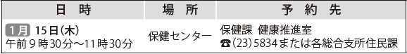 くらし 健康相談 26/36 前の記事 次の記事 発行日 : 2026年01月01日 自治体名 : 福島県喜多方市 広報紙名 : 広報きたかた 令和8年1月号 No.241 赤ちゃんから高齢者まで、健康・栄養・運動・育児などについて保健師・栄養士が個別相談に応じます。 相談を希望する方は、事前の電話予約をお願いします。 Tweet シェアする 納税相談 こころの健康相談