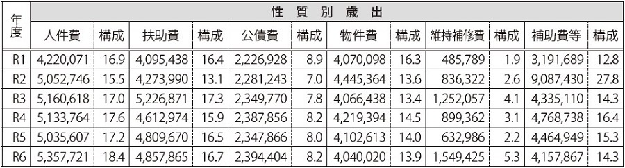 財政運営では、真に必要な行政サービスに要する経費の計上を基本とし、全事務事業の見直しや、補助金の適正化等を前提とした予算編成、公共施設の統廃合等を進めてきましたが、十分な見直しに至らなかったことも、経常的支出増加の要因の一つです。