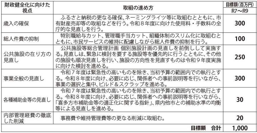 □財政健全化に向けた視点・取組の進め方・目標額
