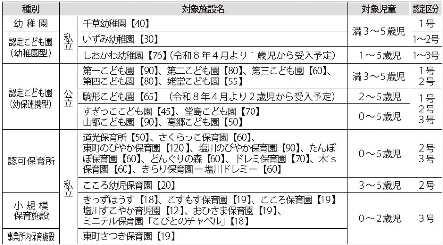(【 】内の数字は定員数(予定)、対象児童の年齢基準日は令和8年4月1日時点)