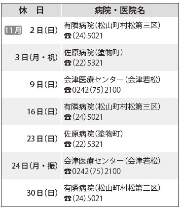 くらし 休日の輪番制病院(2次救急) 27/34 前の記事 次の記事 発行日 : 2025年11月01日 自治体名 : 福島県喜多方市 広報紙名 : 広報きたかた 令和7年11月号 No.239 ※事前に電話をしてから受診してください。 Tweet シェアする 休日の当番医(初期救急)・薬局 喜多方プラザ催し物のご案内