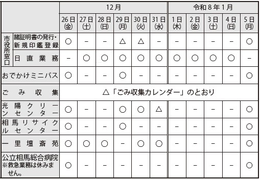 くらし 12月26日~令和8年1月5日「年末年始の業務」