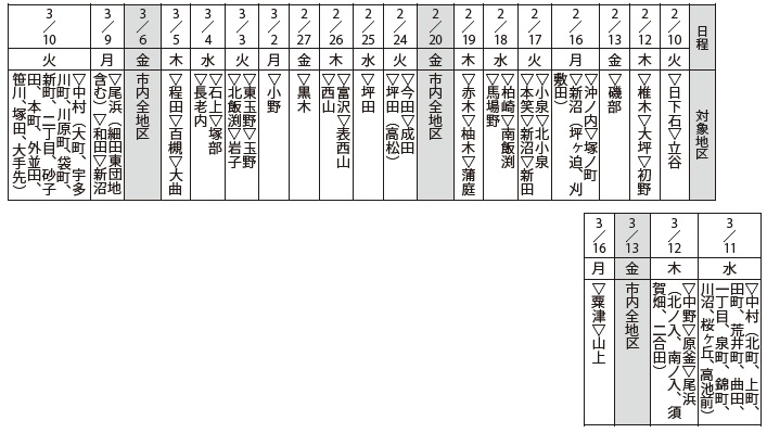 ・市内全地区の日は大変混雑しますので、なるべく地区の指定された日に来場ください。