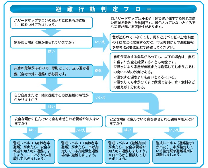 下記の避難行動判定フローで、避難行動を確認しましょう。