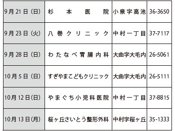 くらし 休日当番医 48/50 前の記事 次の記事 発行日 : 2025年09月15日 自治体名 : 福島県相馬市 広報紙名 : 広報そうま (令和7年9月15日号) ※変更となる場合があります。 ・診療時間は9:00~16:00 ・救急医療病院は公立相馬総合病院(【電話】36-5101)、相馬中央病院(【電話】36-6611) Tweet シェアする 広報そうまを公開しています! 休日歯科当番医