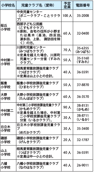 受付場所:市役所1階こども家庭課または各児童クラブ