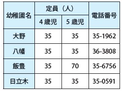 ※入園希望者が5人に満たない場合は、ほかの市立幼稚園への入園を案内する場合があります。