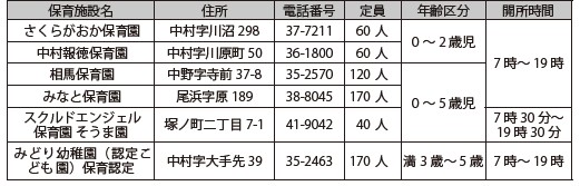 対象者:保護者の就労や病気、親族の介護などの理由によって、保育が必要な市内在住の児童(転入予定者を含む)