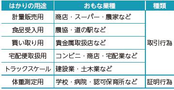 対象となる「はかり」:現在、取り引き、証明行為に使用している「はかり」