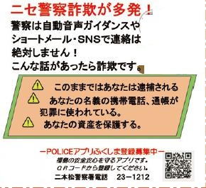 くらし 二本松警察署からのお知らせ 38/46 前の記事 次の記事 発行日 : 2026年02月01日 自治体名 : 福島県二本松市 広報紙名 : 広報にほんまつ 令和8年2月号 ■犯罪発生状況(令和7年1月~12月末) ※()は12月の発生件数 ■地域で子供の見守りを!! 日常生活の中、気軽にできる「ながら見守り」活動の協力をお願いします。 Tweet シェアする にほんまつイベント and ニュース 暮らしの情報 Information on living