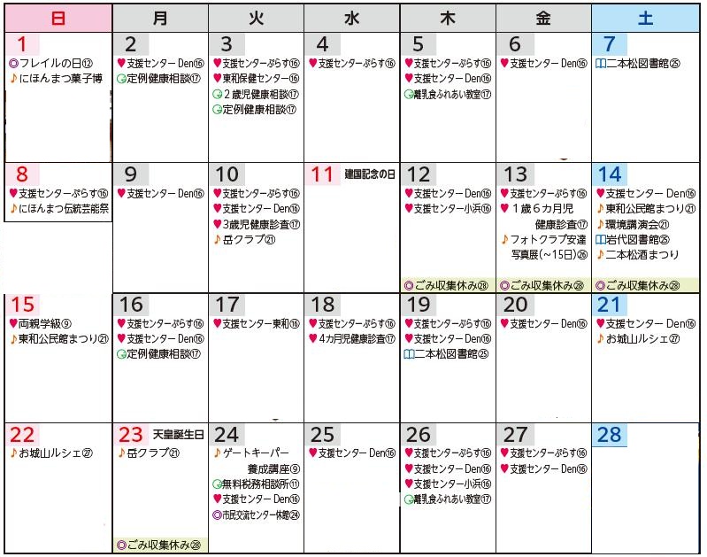 ・「今月のごみ収集」および「休日当番医」「休日緊急歯科当番医」は28ページ『暮らしの情報』をご覧ください。
