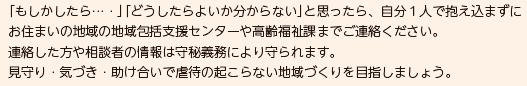 また、認知症に対する正しい理解を広めることが、介護の環境を整えることや、高齢者への虐待等を未然に防止することにも繋がります。