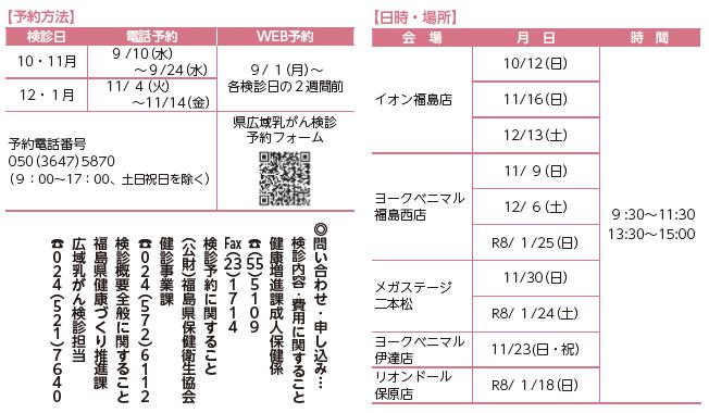 福島県広域乳がん検診事業により、土・日・祝日に商業施設で乳がん検診を受けることができます。
