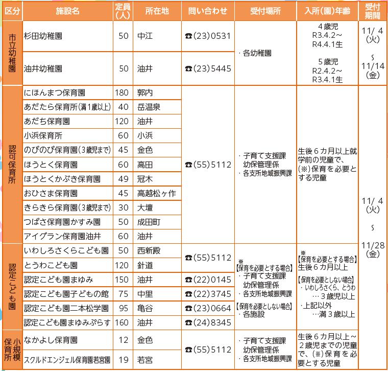 ※受付期間終了後も随時受け付けしますが、希望施設が定員数に達した場合、入所保留となることがありますのでご注意ください。