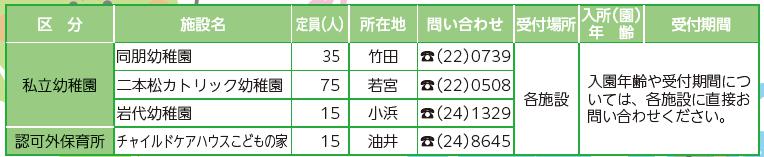 ●次の私立幼稚園、認可外保育所の入園に関しては、直接各施設にお問い合わせください。
