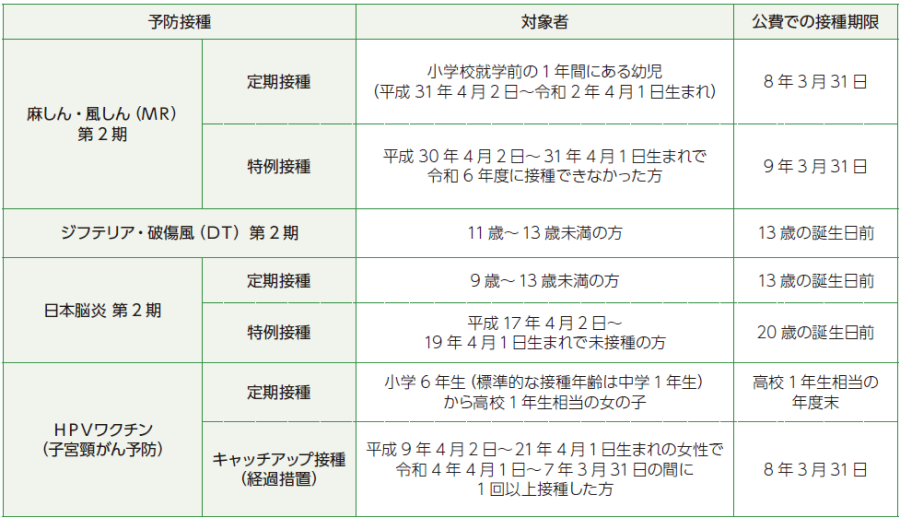 接種記録を母子手帳等でご確認のうえ、冬休みなどを利用してお早めに接種してください。