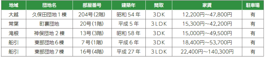 ※その他、随時申し込み受付可能な団地もあります。詳しくは、お問い合わせください。