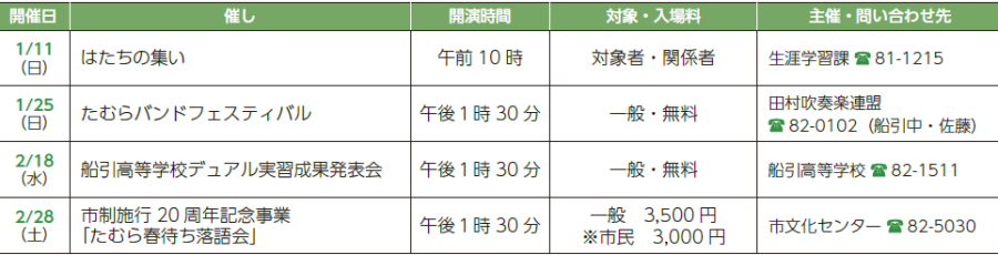 ◇1月・2月の文化センター行事予定