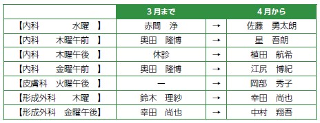 4月から下記の通り一部変更となります。ご理解ご協力のほどよろしくお願い致します。
