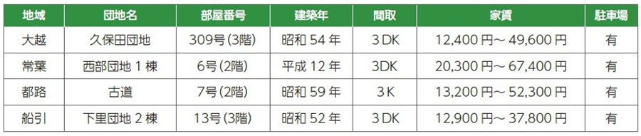 ※その他、随時申し込み受付可能な団地もあります。詳しくは、お問い合わせください。