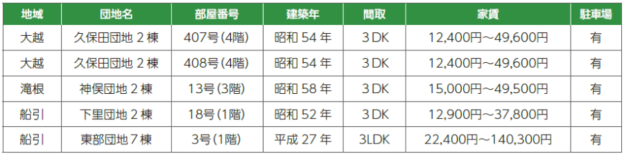 入居者募集中の団地 ※家賃は所得に応じて金額が変わります。
