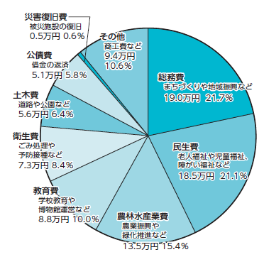 一人当たりに使った金額は87.7万円(普通会計)