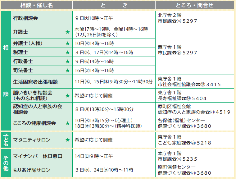くらし 12月の相談・催し 22/24 前の記事 次の記事 発行日 : 2025年12月01日 自治体名 : 福島県南相馬市 広報紙名 : 広報みなみそうま 2025年12月1日号 ★は要予約 Tweet シェアする 南相馬市の人口 休日当番医・薬局、休日歯科当番医、水道修理当番