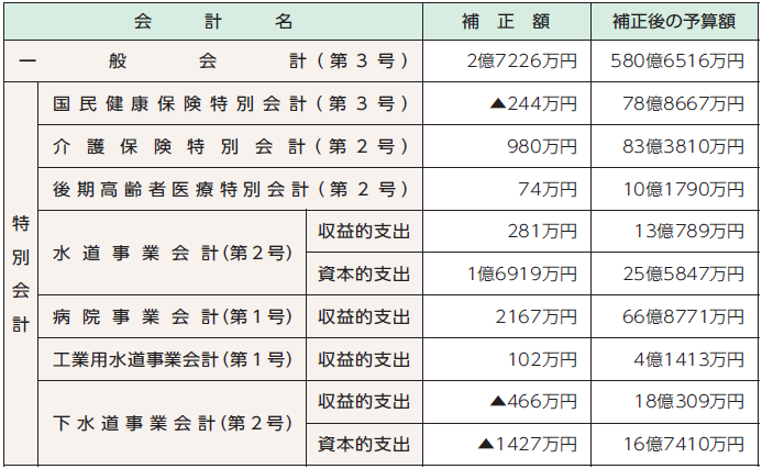 第三次総合計画「7つの政策の柱」に基づく緊急に対応すべき予算などを計上しました。