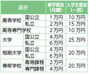 対象:市内に1年以上住所を有し、高校または大学等へ進学予定、もしくは在学している人。