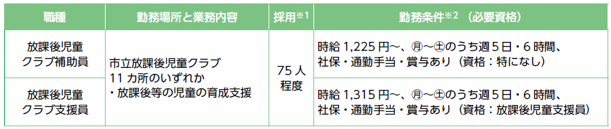 ※2 報酬・給料は市条例・規則に基づき決定するため、変動の可能性あり。開所時間に応じて時間外勤務を指示する場合あり。