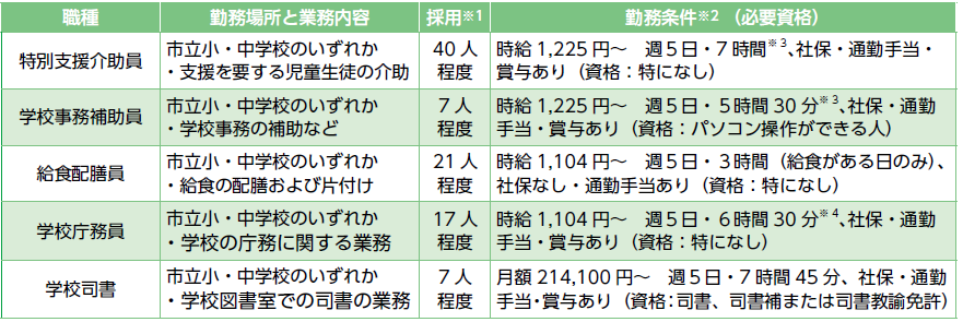 ※2 報酬・給料は市条例・規則に基づき決定するため、変動の可能性あり。勤務日数・時間等変動の可能性あり。行事などで土日勤務になる場合あり
