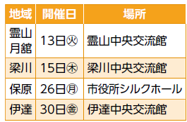 申込み:各総合支所や中央交流館に設置されたチラシに記入し、郵送・持参。または申込フォームから申し込み