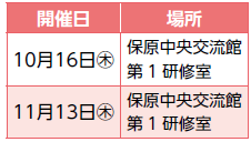 日時:10月8日(水)、11月12日(水) 13時〜16時(一人30分)
