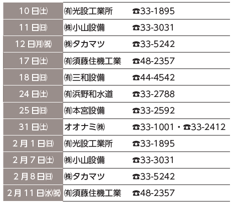 ※宅内の漏水で、早急に修理の必要がある場合のみ。その他の水道修理や工事は、登録店へ依頼してください。登録店一覧は、本紙右記QRをご確認ください。市では、特定の業者の紹介はしていません。