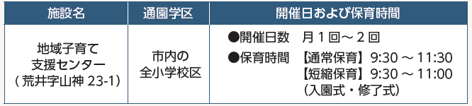 申込場所:地域子育て支援センター(五百川幼保総合施設)