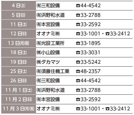 ※宅内の漏水で、早急に修理の必要がある場合のみ。その他の水道修理や工事は、登録店へ依頼してください。登録店一覧は、本紙右記QRをご確認ください。市では、特定の業者の紹介はしていません。